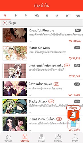 2. ประจำวัน : ผู้อ่านเข้ามาดูได้ว่าการ์ตูนเรื่องใดจะอัพเดทวันไหนบ้าง สามารถติดตามตอนใหม่ๆ ของการ์ตูนเรื่องโปรดได้ทุกสัปดาห์