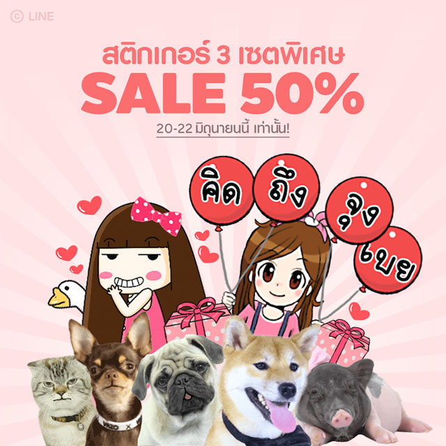LINE ประเทศไทย ปล่อยแคมเปญเด็ด Flash Sale Sticker ลดครึ่งราคาสติกเกอร์ครีเอเตอร์เซตยอดนิยมจาก 100 เหรียญเป็น 50 เหรียญ พิเศษ 3 เซต 3 วันเท่านั้น! ตั้งแต่วันนี้- 22 มิถุนายน 2559