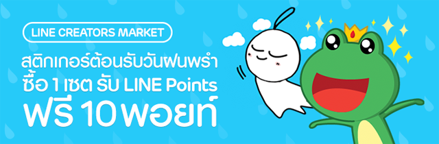 พร้อมเอาใจผู้ใช้งานชาวไทยรับช่วงหน้าฝนโดยเฉพาะ กับสติกเกอร์ครีเอเตอร์ธีม "วันฝนพรำ" นำเสนอมาให้คุณเลือกซื้อ และส่งผ่าน LINE กันให้ชุ่มฉ่ำถึง 10 เซต พิเศษ! เพียงซื้อเซตใดเซตหนึ่งใน 10 เซตนี้ รับทันที 10 LINE Points ฟรี! ตั้งแต่วันนี้ - 21 มิถุนายน 2559 เท่านั้น ดูรายละเอียดแคมเปญและหน้าตาสติกเกอร์ทั้ง 10 เซตได้ที่หน้า LINE Points ในแอป LINE หรือคลิก line://ch/1370466387/c/rainyday (คลิกผ่านมือถือเท่านั้น)