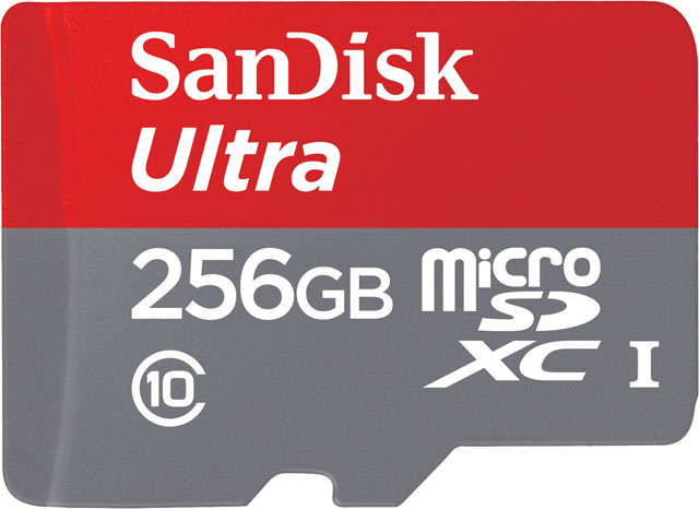สำหรับการ์ดความจำ SanDisk Ultra microSDXC UHS-I ความจุขนาด 256 GB รุ่นพรีเมี่ยม เหมาะสำหรับผู้ใช้งานสมาร์ทโฟนและแทบเล็ตในระบบปฏิบัติการแอนดรอยด์ที่ไม่ต้องการเป็นกังวลกับพื้นที่การจัดเก็บข้อมูล โดยการ์ดความจำรุ่นใหม่นี้สามารถเก็บไฟล์วิดีโอแบบ HD1 ความยาวกว่า 24 ชั่วโมง ได้อย่างสบายๆ และมีความเร็วในการถ่ายโอนข้อมูลสูงสุดถึง 95 MB ต่อวินาที ซึ่งด้วยความเร็วระดับนี้ผู้ใช้งานสามารถถ่ายโอนข้อมูลได้สูงถึง 1,200 รูปภายในเวลาเพียง 1 นาที