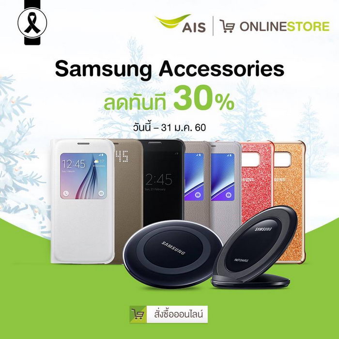 AIS Online Store จัดโปรโมชั่นสำหรับแฟนๆ Samsung ที่กำลังมองหาอุปกรณ์เสริม มาใช้งานคู่กับสมาร์ทโฟนแสนรัก โดยลดราคา Samsung Galaxy Accessories สูงสุดถึง 30% เลยทีเดียว ตั้งแต่วันนี้ - 31 ม.ค. 2560 เท่านั้น สำหรับอุปกรณ์เสริมที่นำมาลดในครั้งนี้ได้แก่