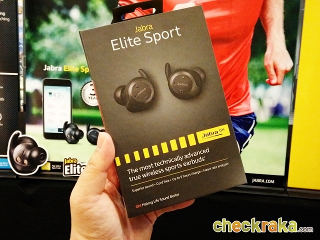 Jabra Elite Sport (จาบร้า อีลิท สปอร์ต) เป็นหูฟังไร้สายอย่างสมบูรณ์แบบ ที่ไม่มีแม้กระทั่งสายที่เชื่อมต่อระหว่างหูขาว และซ้าย ที่ออกแบบมาสำหรับผู้ที่ชื่นชอบการฟังเพลงในระหว่างออกกำลังกาย หรือเล่นกีฬาได้อย่างคล่องตัวยิ่งขึ้น นอกจากนี้ ยังมาพร้อมกับระบบ Audio Pass-through ทำให้ช่วยเพิ่มความปลอดภัยในการออกกำลังการในสถานที่สาธารณะ โดยผู้ใช้งานสามารถตั้งค่าให้ได้ยินเสียงรอบๆ ตัวหรือได้ยินเสียงสภาพแวดล้อมภายนอกในขณะฟังเพลงโดยไม่ต้องถอดหูฟังออก