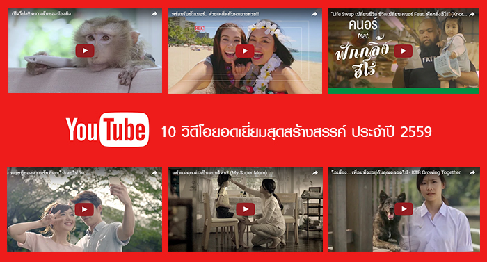 Google ประกาศรายชื่อแบรนด์ที่ได้รับรางวัล Ads Leaderboard ประจำปี 2559 ที่งาน YouTube Summit โดยผลงานโฆษณาบน YouTube ที่รับรางวัลทั้ง 10 เรื่อง เป็นเสียงตอบรับจากผู้ชมทั่วประเทศตลอดทั้งปี 2559 วิดีโอโฆษณาใน Leaderboard เหล่านี้ชี้ให้เห็นว่าไม่มีสูตรสำเร็จตายตัวสำหรับความคิดสร้างสรรค์บน YouTube และที่สำคัญก็คือเนื้อหาเรื่องราวที่เข้าถึงผู้ชมได้อย่างเหมาะเจาะ
