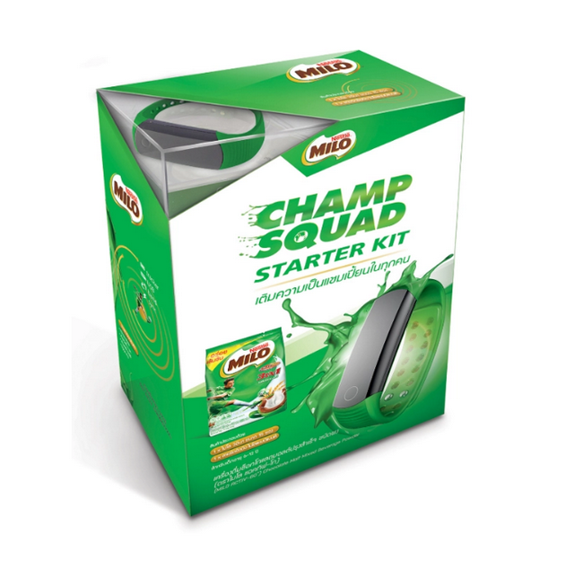 "MILO Champ Squad Starter Kit" ได้รับการพัฒนาขึ้นเพื่อเป็นผู้ช่วยคุณแม่ในการส่งเสริมให้ลูกในวัยเรียนที่มีอายุระหว่าง 6-12 ปีได้พัฒนาศักยภาพของตัวเอง ด้วยการกำหนดเป้าหมายและทำให้ได้ตามที่ได้ตั้งใจไว้ในทุก ๆ วัน เพื่อก้าวสู่ความสำเร็จในชีวิต โดยผสานโลกดิจิทัลเข้ากับโลกแห่งความเป็นจริง ทำให้คุณแม่รุ่นใหม่ทั่วประเทศได้สัมผัสกับผู้ช่วยที่จะติดตามลูกน้อยไปทุกกิจกรรมที่ทำ เพียงให้ลูกสวมใส่สายรัดข้อมือ "MILO Champ Band" ที่ทำงานร่วมกับแอปพลิเคชันบนมือถือไว้ตลอดเวลา