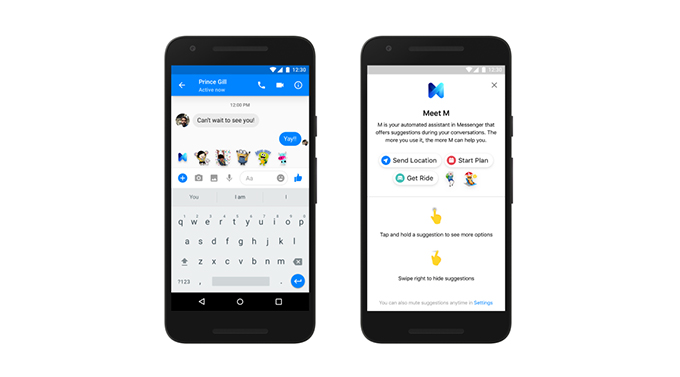 Facebook Messenger เปิดตัวผู้ช่วยอัจฉริยะในชื่อ "Messenger M" โดยจะเป็นระบบ AI ผู้ช่วยอัจฉริยะที่ทำงานด้วยการตอบโต้ผ่านการแชทใน Facebook Messenger และทำหน้าที่เสมือนแชทบอท แนะนำสิ่งต่างๆ ให้กับเรา ตัวอย่างเช่น เมื่อเพื่อนถามว่าอยู่ที่ไหน ทาง Messenger M จะส่งตำแหน่งที่อยู่ของเราให้กับเพื่อนได้อย่างง่ายๆ (ตรงส่วนนี้ถ้าไม่ต้องการก็สามารถปิดได้ครับ)