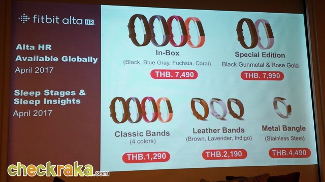 Fitbit Alta HR มีจำหน่ายแล้วทั่วประเทศในราคา 7,490 บาท โดยมีให้เลือก 4 สี ได้แก่ สีดำ สีฟ้าเทา สีส้มคอรัล และสีชมพูฟิวเซีย ที่ตัวแทนจำหน่ายของ Fitbit อาทิ บานาน่า ไอที, .Life (ร้านดอทไลฟ์), เจมาร์ท, คิงพาวเวอร์, บีทูเอส, พาวเวอร์บาย, ไอทีซิตี้, ร้านทรูช็อป, Fitbit Thailand by TSM, Koan, Lazada, Central, Bemynt, Tohome, Proflexy และ avarinshop และเตรียมพบกับสายแอคเซสเซอรีแบบคลาสสิก สายหนังพรีเมียม กำไลข้อมือดีไซน์หรู และ Fitbit Alta HR รุ่นพิเศษ (7,990 บาท) ได้ทั่วประเทศเร็วๆ นี้