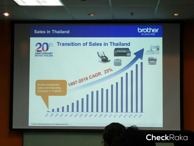 สำหรับการดำเนินงานและธุรกิจของบราเดอร์ ประเทศไทย มร.โทโมยูกิ ฟูจิโมโต กรรมการผู้จัดการ บริษัท บราเดอร์ คอมเมอร์เชี่ยล (ประเทศไทย) จำกัด กล่าวว่า บราเดอร์ ประเทศไทยก่อตั้งขึ้นตั้งแต่ปี 2540 ซึ่งในปีนี้ได้ดำเนินธุรกิจครบ 20 ปี และมียอดขายเติบโตขึ้นทุกปี โดยเฉพาะในช่วง 6 ปีที่ผ่านมาจนถึงปัจจุบัน ผลการดำเนินธุรกิจประสบความสำเร็จในระดับที่น่าพอใจ โดยมียอดขายเติบโตเพิ่มขึ้นกว่า 1 เท่าตัว นอกจากนี้ ยังครองส่วนแบ่งทางการตลาดเป็นอันดับ 1 ในตลาด Mono Laser Multi-Function อยู่ที่ 34.6% และเป็นอันดับ 2 ในตลาด Mono Laser Printer 28.3% (ข้อมูลจาก GfK) ทั้งนี้ในปีงบประมาณ 2560 บราเดอร์ ประเทศไทยเชื่อมั่นว่าจะสามารถดำเนินธุรกิจให้เป็นไปตามเป้าที่วางไว้ โดยคาดว่าทั้งปีงบประมาณจะสามารถสร้างอัตราการเติบโตประมาณ 5% ซึ่งในไตรมาสแรกที่ผ่านมา (เมษายน-มิถุนายน 2560) สามารถทำยอดขายเติบโตกว่า 12% เมื่อเทียบกับช่วงเวลาเดียวกันของปีที่ผ่านมา รวมทั้งดำเนินธุรกิจไปในทิศทางเดียวกับบราเดอร์ทั่วโลก ทั้งการรักษาฐานลูกค้าทั่วไปและขยายฐานไปยังกลุ่มลูกค้าองค์กร ปรับปรุงระบบการทำงานภายในให้มีประสิทธิภาพสูงขึ้น และส่งเสริมการเรียนรู้ของบุคลากรเพื่อให้ได้งานที่มีประสิทธิภาพสูงสุด ทั้งนี้ จากการขยายฐานกลุ่มลูกค้าไปยังธุรกิจองค์กรเพิ่มขึ้น บริษัทฯ ตั้งเป้าเพิ่มสัดส่วนรายได้จากกลุ่มลูกค้าธุรกิจองค์กรเดิมในปีงบประมาณ 2559 อยู่ที่ 13% เพิ่มเป็น 20% ในปี 2561 โดยที่เหลือจะเป็นสัดส่วนรายได้จากกลุ่มลูกค้าทั่วไป และกลุ่ม SOHO (Small Office Home Office) โดยใช้กลยุทธ์การนำเสนอผ่านระบบโซลูชัน และการทำสัญญาการค้ากับกลุ่มธุรกิจองค์กร