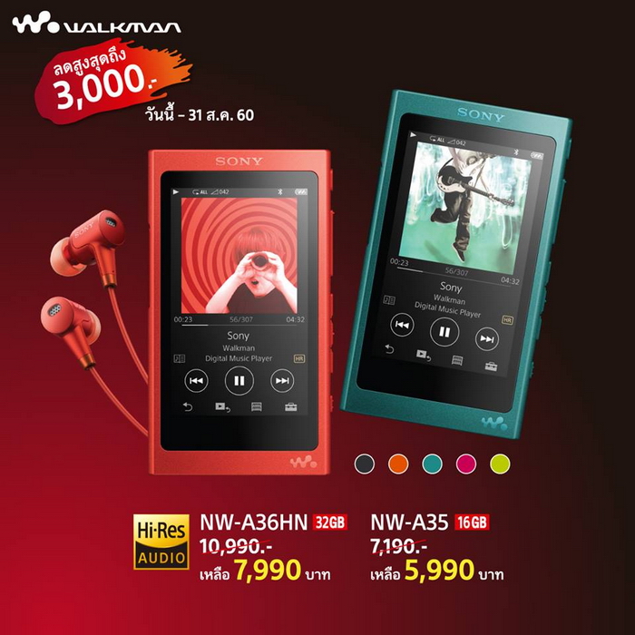 - Sony Walkman NW-A35 (16GB) ลดราคาจาก 7,190 บาท เหลือเพียง 5,990 บาท