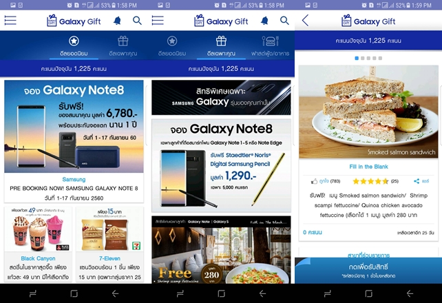 หากยิ่งเราใช้สมาร์ทโฟนระดับสูง เราจะยิ่งได้ในส่วนของ "ดีลเฉพาะคุณ" ดีขึ้นเท่านั้น อย่างในภาพนี้เป็นดีลของ Samsung Galaxy S8+ จะเห็นว่าพรีเมี่ยมมากๆ ซื้อโทรศัพท์มา ไม่ใช่แค่ได้โทรศัพท์ แต่ได้ส่วนลด และมื้ออร่อยฟรีๆ แถมยังมีอัพเดตมาเรื่อยๆ บ่อยมากทีเดียวนะครับ ใครที่ใช้ Samsung Galaxy Gift ผมว่าเดือนๆ นึงประหยัดค่าอาหารและขนมได้เยอะจริงๆ