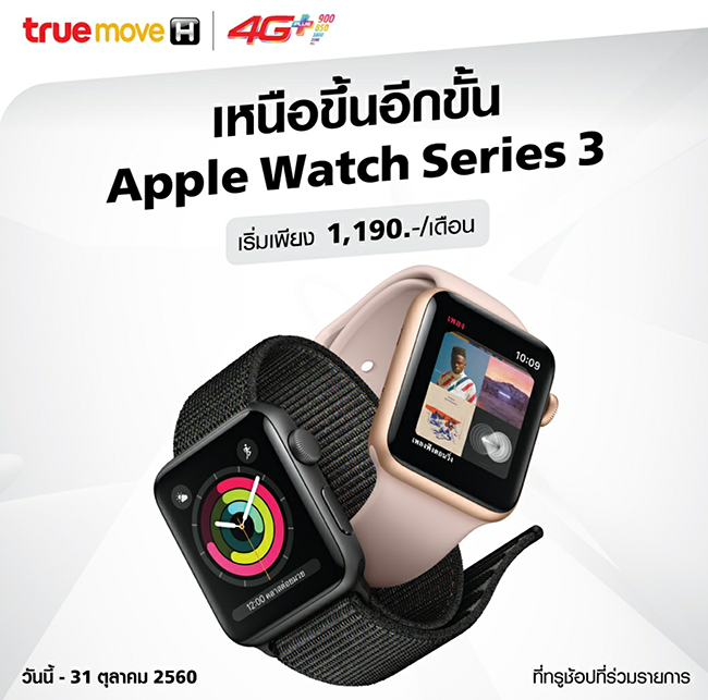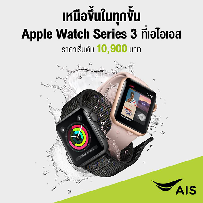 นอกจากนี้ AIS ยังให้คุณเป็นเจ้าของ Apple Watch Series 3 พร้อมผ่อน 0% นานสูงสุด 10 เดือน กับบัตรเครดิตที่ร่วมรายการ และรับส่วนลดพิเศษ 1,000 บาท สำหรับรายเดือนที่มีแพ็กเกจหลักค่าบริการรายเดือนตั้งแต่ 488 บาท และมีอายุการใช้งาน 3 เดือนขึ้นไป หรือลูกค้าเปิดเบอร์ใหม่ ย้ายค่ายเบอร์เดิม ลูกค้าเปลี่ยนจากเติมเงินเป็นรายเดือน พร้อมสมัครแพ็กเกจขั้นต่ำ 488 บาท ใช้บริการต่อเนื่องนาน 6 เดือน และจำกัด 1 หมายเลขโทรศัพท์ ต่อ 1 สิทธิ์ซื้อราคาพิเศษ