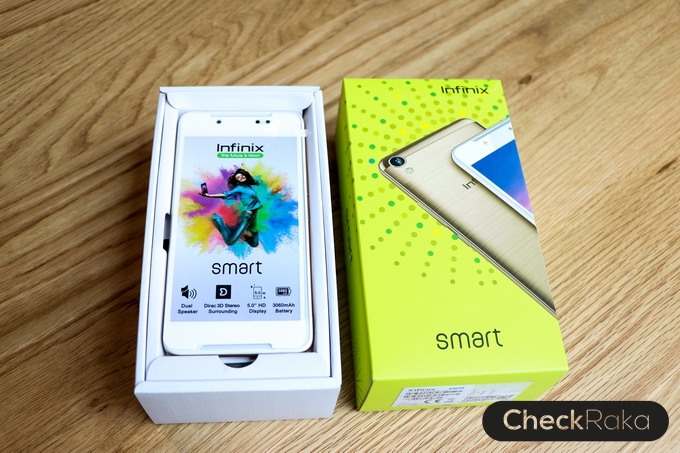 Infinix Smart ตัวกล่องจะมีสีสันสดใส ภายในกล่องจะมีอุปกรณ์ดังต่อไปนี้