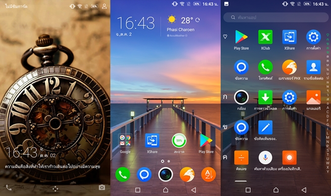 ในส่วนหน้า Home สามารถซ่อนไอค่อนได้โดยการจีบนิ้วเข้าหากัน ในส่วนของการปรับแต่งสามารถปรับเปลี่ยน Wallpaper, Widget, Transition (ปรับได้ 6 แบบ), จัดเรียงไอค่อน (ผมชอบมากครับ มันฉลาดจนสามารถจัดเก็บแบบแยก Folder ตามประเภทของแอปพลิเคชั่นให้เราได้เลย) นอกจากนี้ยังสามารถเลือกใช้งาน 2 รูปแบบ ทั้งแบบหน้า Home มาตรฐาน และแบบหน้า AppDrawer ที่เรียงตามตัวอักษร นอกจากนี้ยังมาพร้อม Browser ของตัวเองอย่าง Phoenix ด้วยนะครับ ผมลองใช้งานแล้วใช้ได้เลยละ ลื่นดีครับ