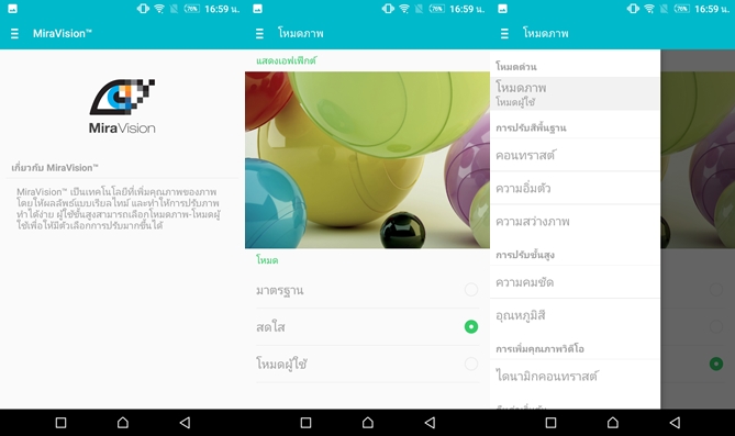 ในส่วนของ App Toggle สามารถปรับแต่งได้เอง และมีตัวเลือกให้ครบถ้วนเลยครับ รองรับการปรับแสงสว่างหน้าจออัตโนมัติด้วย ซึ่งปกติสมาร์ทโฟนราคาประหยัดหลายๆ รุ่นเลยที่ตัดออกไป และรุ่นนี้รองรับเทคโนโลยีการปรับแต่งหน้าจอ Mira Vision โดยเราสามารถปรับแต่งหน้าจอได้อย่างละเอียด หรือจะเลือกการแสดงเอฟเฟ็กต์หน้าจอแบบมาตรฐานได้ถึง 3 รูปแบบ ในส่วนของการปรับแต่งอย่างละเอียด เราจะสามารถปรับแต่งได้ทั้งในส่วนของคอนทราสต์, ความอิ่มตัว, ความสว่าง, ความคมชัด, โทนสี และสามารถปรับค่าคอนทราสต์ ในส่วนของการแสดงวีดีโอได้อีกด้วย นอกจากนี้ยังรองรับโหมดป้องกันการเปิดหน้าจอโดยที่เราไม่ตั้งใจ เมื่ออยู่ในกระเป๋า