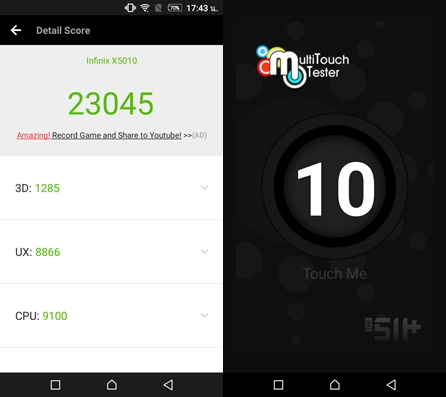 Infinix Smart ใช้ชิปเซ็ต MediaTek MT6580, Quad-Core 1.3GHz Cortex-A7, GPU ARM Mali 400 MP2, RAM 1GB, หน่วยความจำ 16GB (รองรับ MicroSD) มาดูคะแนนทดสอบกันครับ