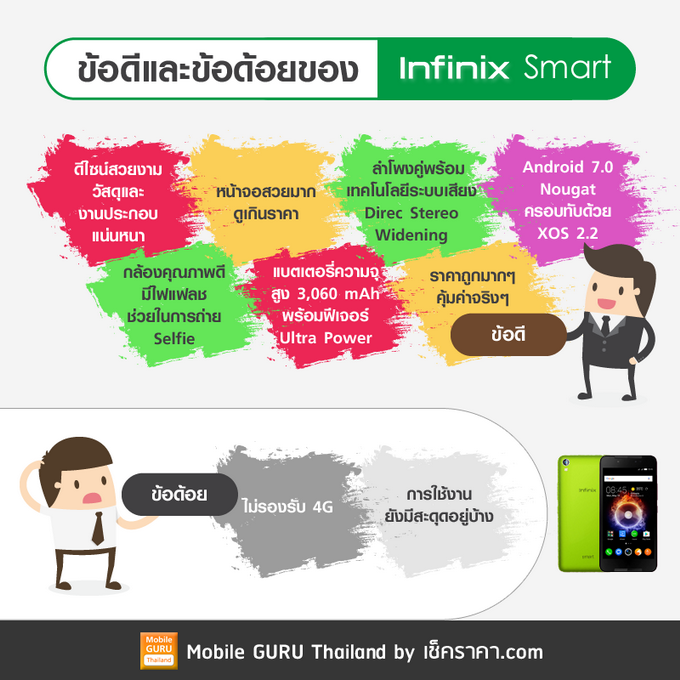 Infinix Smart เป็นสมาร์ทโฟนราคาประหยัด ที่ให้ความรู้สึกเกิดความคาดหมายจริงๆ ก่อนจะได้รีวิวผมไม่นึกเลยว่า Infinix จะใส่อะไรต่อมิอะไรมาในเครื่องราคานี้มากขนาดนี้ ทั้งตัวเครื่องที่มีดีไซน์สวยงาม งานประกอบแน่นหนา หน้าจอที่สวยเกินราคา คุณภาพเสียงที่ดีใช้ได้ แถมมาพร้อมลำโพงคู่ แบตเตอรี่ใช้งานได้ยาวนาน กล้องคุณภาพดีไม่เบา ที่สำคัญคือ XOS นั้นทำออกมาน่าใช้และสวยงามครับ ทำให้มันดูคุ้มค่าเกินราคา
