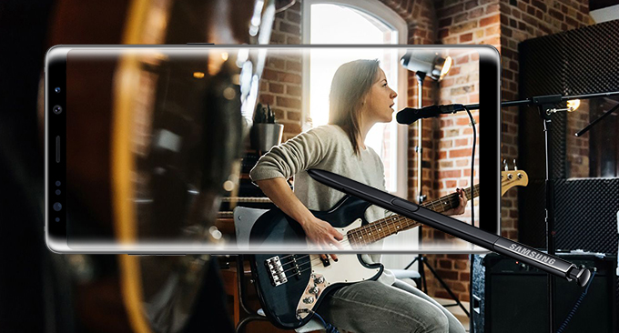 Samsung Galaxy Note 8 มีดีไซน์คล้ายๆ Galaxy S8 Plus แต่จะดูเหลี่ยมๆมากกว่า ด้านหลังเป็นกระจก และขอบด้านข้างเป็นโลหะเงาๆ ด้านหลังออกแบบสวยครับ แต่วางตำแหน่งตัวสแกนลายนิ้วมือไม่เหมาะสม ใช้งานค่อนข้างยาก นิ้วจะไปโดนกระจกกล้องได้ง่ายๆ หน้าจอ Super AMOLED โค้งไร้ขอบ Infinity Display อัตราส่วน 18.5:9 ความละเอียด QHD+ รองรับ HDR10 compliant และ 3D Touch ตรงปุ่ม Home เสมือน และ Always-on display กระจก Corning Gorilla Glass 5