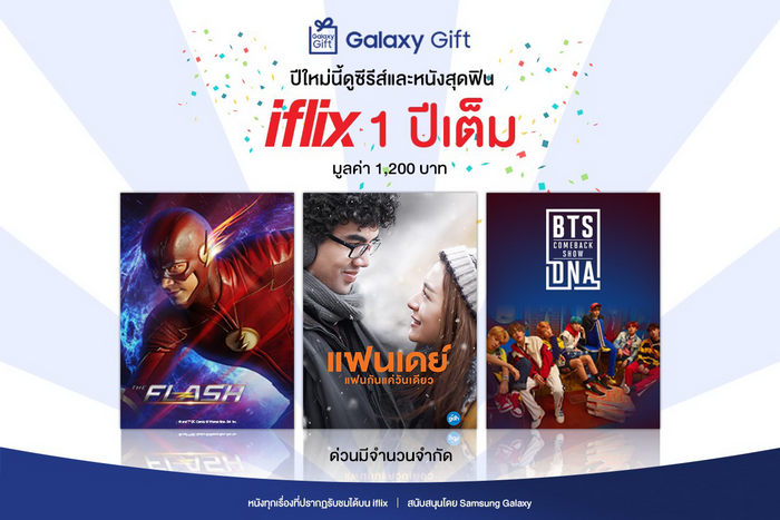 Samsung Galaxy Gift แจกฟรี iFlix ชมกันยาวๆอีก 1 ปี เป็นของขวัญปีใหม่ สำหรับแฟนๆ ซัมซุง