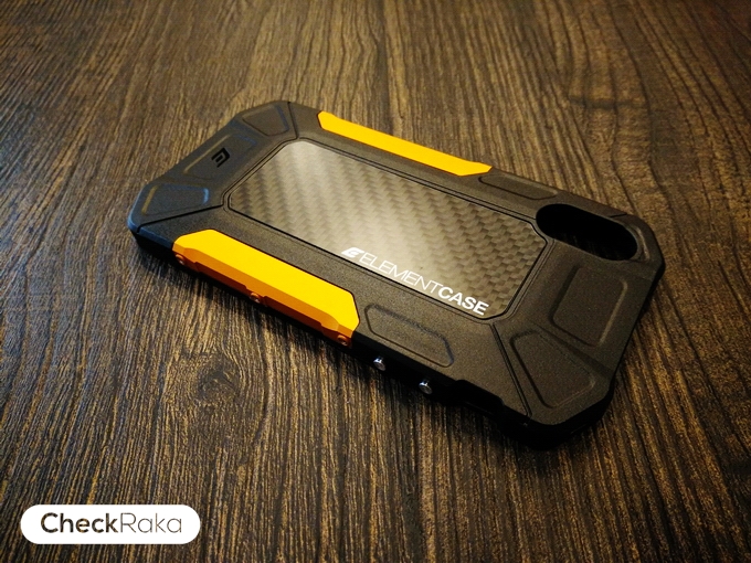 Element Case Formula สำหรับ iPhone X ออกแบบได้สวยมากๆครับ ดูเท่เหมาะกับผู้ชาย จะมีให้เลือก 2 สี ได้แก่ สีส้ม-ดำ (แบบที่เราได้มาทดสอบ) และสีฟ้า-เทา โดยส่วนตัวผมว่าสีส้มดำสวยกว่านะครับ วัสดุตัวเคสผลิตมาจาก Polycarbonate และแกนกลางเสริมความแข็งแกร่งด้วย Carbon Fiber เกรดเดียวกับที่ใช้ในอุตสาหกรรมการบิน ช่วยเสริมความแข็งแกร่งทำให้เคสไม่บิดงอได้ง่าย ด้านบนและด้านล่างจะเป็นยาง TPU (Thermoplastic Polyurethane) ด้านข้างหุ้มด้วยวัสดุโลหะ Aluminum CNC 6061-T6 ชุบสีแบบ Anodize Coating ทำให้สีคงทนไม่ลอกได้ง่ายๆ และมีน๊อตที่ทำมาจากโลหะ Stainless ไม่เกิดสนิม