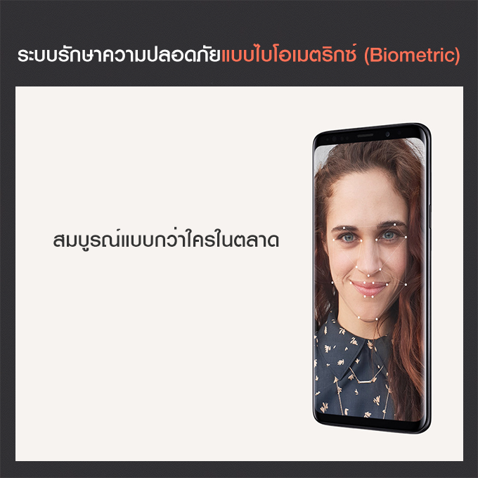 Samsung Galaxy S9 และ Samsung Galaxy S9+ ยังคงมาพร้อมระบบรักษาความปลอดภัยแบบไบโอเมตริกซ์ (Biometric) ที่สมบูรณ์แบบ มีทั้งระบบจดจำใบหน้า Face recognition, ระบบสแกนม่านตา Iris scanning, ระบบสแกนลายนิ้วมือ Fingerprint Scanner รวมทั้งระบบพื้นฐานอย่าง Pattern และ Password เรื่องความแม่นยำหายห่วงครับ ทำได้ดีมาตั้งแต่รุ่นที่แล้ว นอกจากนี้ยังมาพร้อมระบบรักษาความปลอดภัยมาตรฐานสูง Samsung Knox 3.1