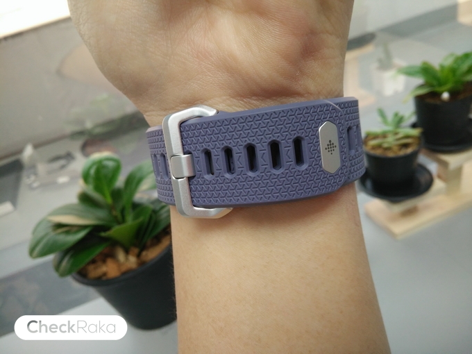 สายนาฬิกาของ Fitbit Ionic ออกแบบมาได้ดีมากครับ สายดูแข็งแรงและนุ่มไม่ระคายผิว สวมใส่ได้สบาย และไม่มีสายรัดนะครับ แต่จะใช้ตัวหมุดล็อคสายแทน ซึ่งผมว่าดีนะเพิ่มความแน่นหนามากยิ่งขึ้น แถมยังถอดเปลี่ยนสายได้ง่ายมากๆ โดยทาง Fitbit มีวางจำหน่ายสายนาฬิกาของรุ่นนี้ออกมาหลากหลายแบบเลย ไม่ว่าจะเป็นสายสิริโคนสำหรับใส่ออกกำลังกาย หรือสายหนังแท้ก็มีให้เลือกซื้อกัน