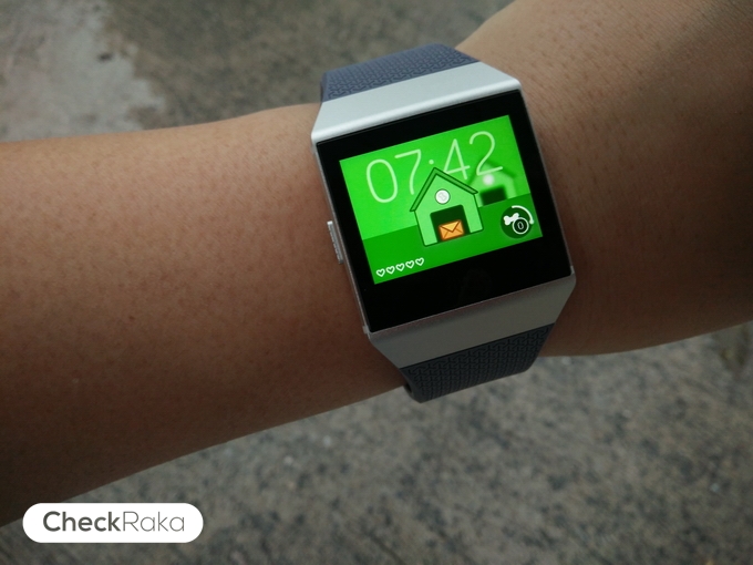 สำหรับหน้าปัดนาฬิกาที่ผมชอบมากๆ ก็คือ ชุดสัตว์เลี้ยงที่ออกแบบโดย Fitbit Labs มีทั้งน้องแมวและน้องหมาน่ารักมากๆ มันจะเดินตามเมื่อเราออกเดินด้วยฮะ และตอนกลางคืนก็จะได้เห็นมันเข้านอน โดยเมื่อเราเดินครบ 1,000 ก้าว เราจะสามารถให้อาหารน้องหมา หรือน้องแมวได้ โดยจะได้คะแนนหัวใจครึ่งดวง ถ้าจะให้คะแนนเต็มต้องเดิน 10,000 ก้าวต่อวัน ก็จะอยู่ในระดับที่แนะนำ และถ้าเราไม่ยอมเดิน เราก็จะให้อาหารมันไม่ได้ สุดท้ายมันจะหนีออกจากบ้านครับ โดยมันจะทิ้งจดหมายไว้ด้วยครับ เป็นลูกเล่นที่น่ารักและมีอารมณ์ขันมากๆ แต่หากเราเดินจนสามารถเติมอาหารให้มันได้ตามที่กำหนด น้องหมาหรือน้องแมวของเราก็จะกลับมาที่บ้านเหมือนเดิม แนะนำเลยครับว่าต้องเล่น