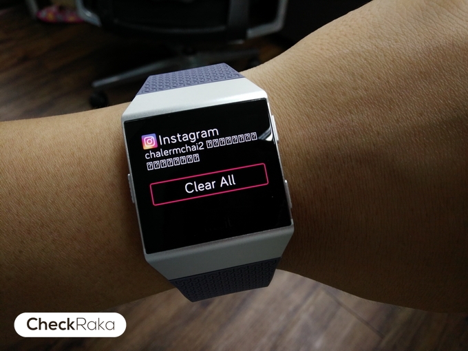 - ปัดหน้าจอขึ้นมาจะเป็นการเปิดดูการแจ้งเตือนต่างๆ รองรับระบบสั่นด้วย ตรงจุดนี้น่าเสียดายมากๆครับ เพราะไม่รองรับการแจ้งเตือนภาษาไทย รวมทั้งเมนูต่างๆทั้งบนสมาร์ทโฟน และบนแอปพลิเคชั่นก็ไม่รองรับภาษาไทยเช่นกัน ถือว่าเป็นจุดอ่อนสำคัญที่ Fitbit ควรรีบปรับปรุงอย่างเร่งด่วนจริงๆครับ สำหรับการทำตลาดในประเทศไทย