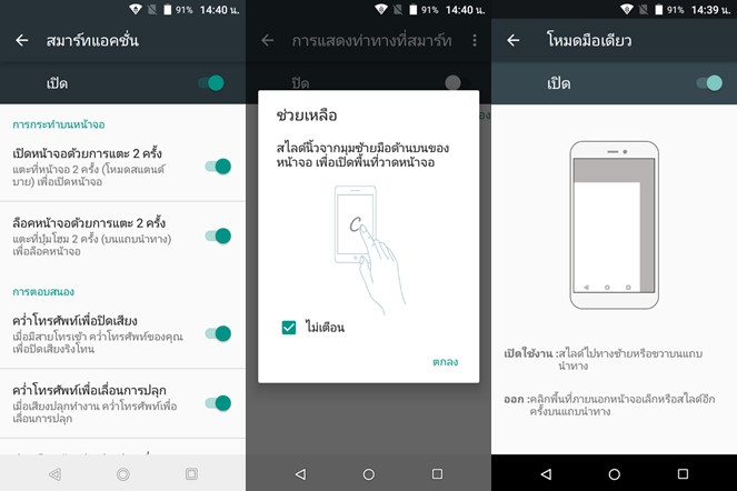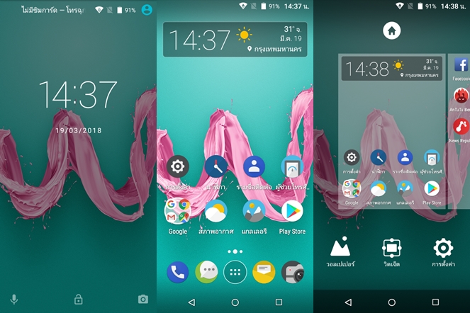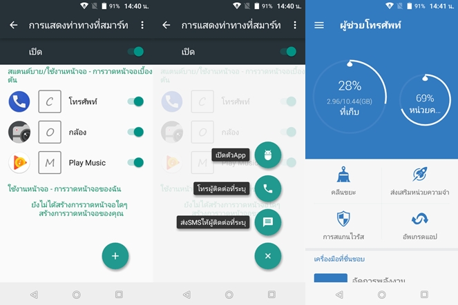 ในหน้า Home มีฟีเจอร์ My Smart Left Page ที่จะช่วยแสดงรายชื่อติดต่อล่าสุด, แอปพลิเคชั่นโปรด, ฟีดข่าวสารต่างๆ ที่น่าสนใจ, พยากรณ์อากาศ และนัดหมาย ไว้ในหน้าเดียว ซึ่งเราสามารถปิดการทำงานได้ครับ มาพร้อมแอปพลิเคชั่น Phone Assist ซึ่งจะช่วยในการเคลียส์ไฟล์ขยะ จัดการกับ RAM รวมทั้งตรวจหาไวรัส และมีโหมด Power Saver ช่วยในการประหยัดพลังงาน ปุ่มควบคุมด้านล่างสามารถสลับคำสั่งได้ 2 รูปแบบตามความถนัด และรองรับฟีเจอร์ทำงานมือเดียว ใช้งานง่ายมากครับ เพียงแค่เอานิ้วปัดที่แถบปุ่มควบคุมด้านล่างเท่านั้น