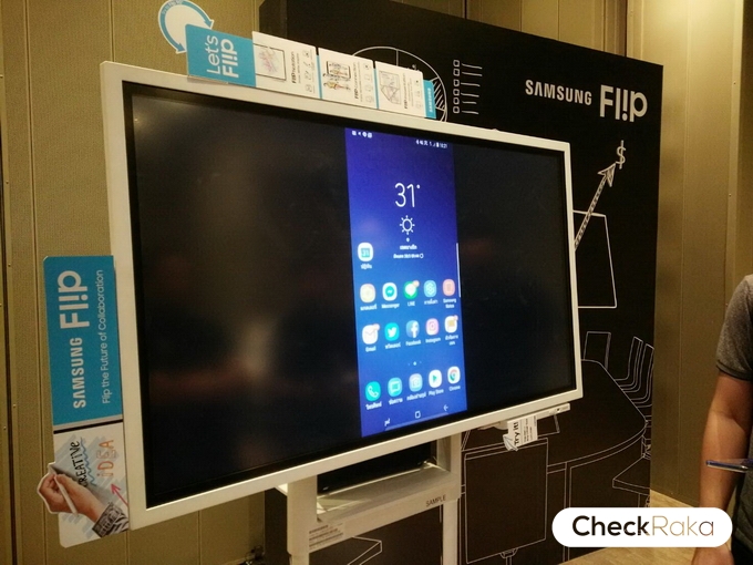Samsung Flip (ซัมซุง ฟลิป) เปิดตัวครั้งแรกในงาน CES 2018 ที่ผ่านมา ณ นครลาสเวกัส สหรัฐอเมริกา เป็นนวัตกรรม ดิจิทัล ฟลิปชาร์ทอัจฉริยะ พร้อมให้ผู้ใช้สามารถแชร์ไอเดียจากสมาร์ทโฟนและดีไวซ์ต่างๆ ในแบบอินเตอร์แอ็คทีฟ รองรับผู้ใช้งานได้หลายคนพร้อมกัน ถูกสร้างสรรค์ขึ้นเพื่อตอบโจทย์รูปแบบการประชุมและทำงานของผู้ใช้ในยุคปัจจุปัน ซึ่งต้องการพื้นที่ทำงานที่มีการโต้ตอบกัน และ เน้นการทำงานทำงานร่วมกันผ่านเทคโนโลยีและดีไวซ์ต่างๆ ไม่ว่าจะเป็น คอมพิวเตอร์ สมาร์ทโฟน และแท็บเล็ต
