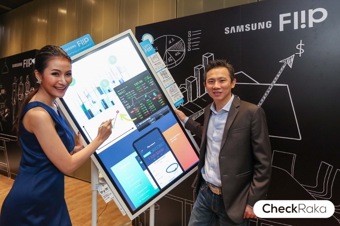 Samsung Flip (ซัมซุง ฟลิป) ดิจิทัล ฟลิปชาร์ทอัจฉริยะ เพิ่มประสิทธิภาพสูงสุดในทุกรูปแบบการประชุม รวมไปถึงความเป็นไปได้ในตลาดต่างๆในอนาคตอันใกล้ โดดเด่นด้วยฟีเจอร์ในการทำงานร่วมกันทั้ง แชร์ข้อมูล เขียนโน้ตประกอบการนำเสนอ ค้นหาข้อมูลจากโน้ตที่ต้องการบนหน้าจอ หรือ สร้างคอนเท้นต์ที่ต้องการโดยผู้ใช้หลายคนพร้อมๆกัน (สูงสุด 4 คน) มาพร้อมพอร์ตและตัวเลือกการเชื่อมต่อที่หลากหลาย ได้แก่ ยูเอสบี คอมพิวเตอร์ สมาร์ทโฟน และแท็บเล็ต