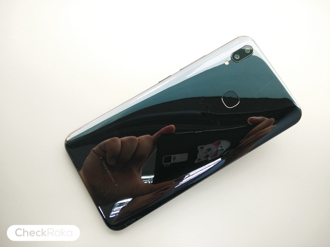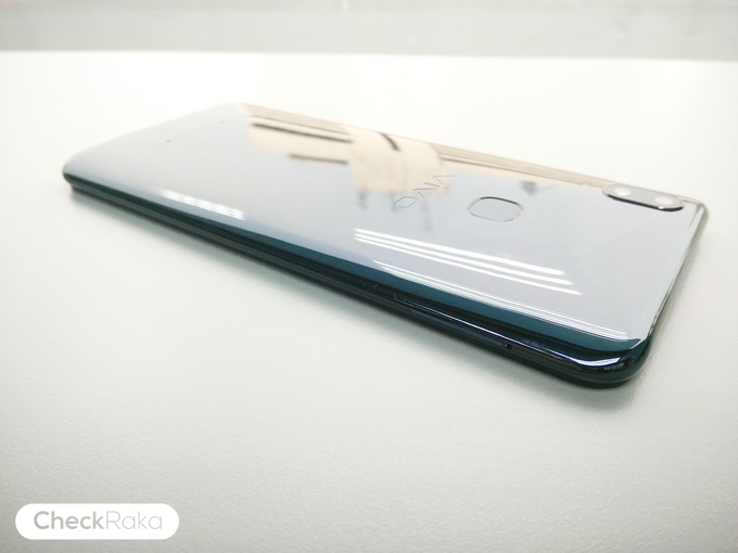Vivo V9 มาพร้อมดีไซน์พลาสติกไร้รอยต่อ ตัวได้ได้มารีวิวเป็นสีดำเงา (Pearl Black) สวยงามมากๆ ครับ เงาวับเลย เป็นรอยขีดข่วนได้ยาก เคลือบผิวมาดีทีเดียว แต่ก็เป็นรอยนิ้วมือได้ง่าย ถ้าเป็นคนมือชื้นๆ อาจจะต้องเช็ดกันทั้งวัน แนะนำให้ใส่เคสครับจะช่วยได้มาก