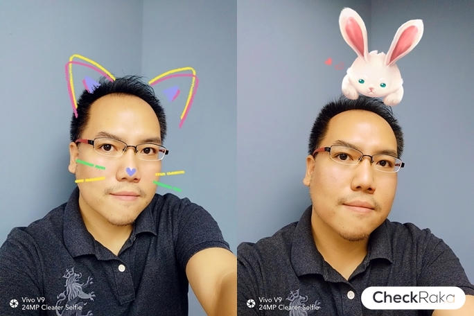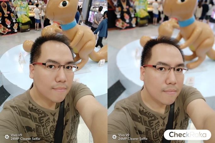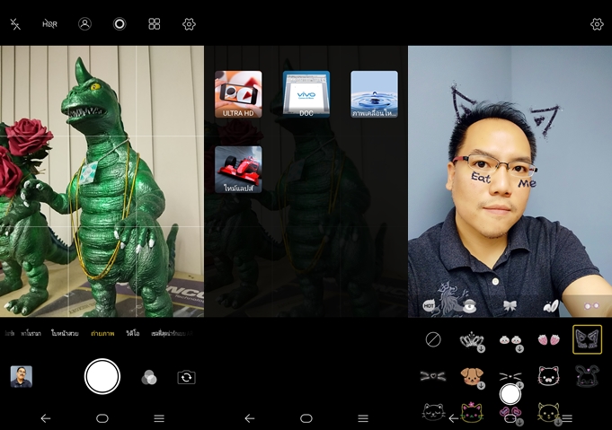 Vivo V9 จัดเต็มกล้องหน้าความละเอียดสูง 24MP F2.0 ที่มาพร้อม AI Face Beauty, กล้องหลังคู่ 16MP + 5MP, F2.0, บันทึกวีดีโอความละเอียด 4K ทั้งกล้องหน้าและกล้องหลัง และมาพร้อมฟีเจอร์ AI Selfie Lighting กับ AR Stickers ที่ได้รับความร่วมมือกับ Pitu คุณภาพกล้องทำออกมาน่าประทับใจครับ ทั้งกล้องหลังและกล้องหน้า โดยเฉพาะกล้องหน้าถือว่ายกระดับไปอีกขั้นสำหรับ Vivo เลย ถ่าย Selfie ออกมาได้ดูเป็นธรรมชาติ กระจ่างใส สวยมากครับ ฟีเจอร์ละลายหลังก็เนียนดี