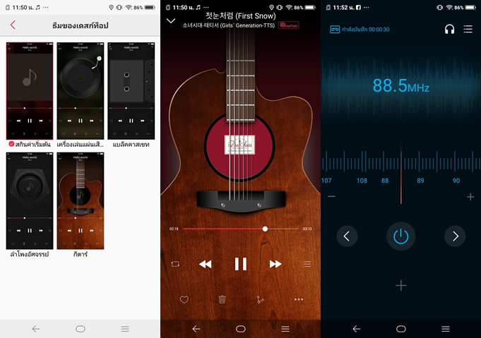 Vivo V9 รุ่นนี้ไม่รองรับระบบเสียง Hi-Fi นะครับ แต่มีฟีเจอร์ DeepField เป็นการปรับแต่งเสียงแบบพิเศษ ได้แก่ ระบบเสียง 360 องศา, เบสหนักๆ และเน้นเสียงร้อง ซึ่งผมว่าทำได้ดีนะ โดยส่วนตัวชอบครับ นอกจากนี้ยังสามารถปรับแต่งเสียงได้เอง รวมทั้งเลือกจับคู่กับหูฟังตามที่ระบุ เพราะใช้พรีเซ็ตเสียงสำเร็จรูปที่ทาง Vivo จูนมาให้ และรุ่นนี้มีวิทยุมาให้นะครับ สามารถบันทึกเสียงเอาใว้ฟังภายหลังได้