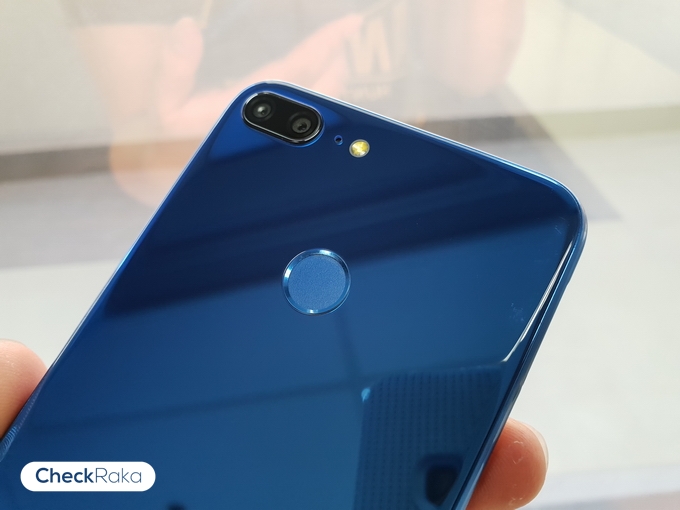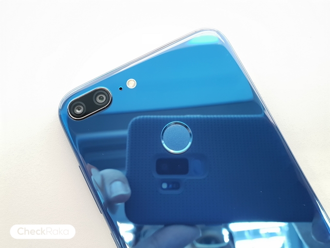 ด้านหลังเป็นพลาสติกเงาวับให้ความรู้สึกเหมือนกระจกมากๆ และเงาจนสามารถใช้ส่องแทนกระจกเงาได้เลย สำหรับสีที่มีเข้ามาวางจำหน่าย จะมีด้วยกัน 3 สี ได้แก่ Midnight Black, Sapphire Blue และ Glacier Gray ด้านหลังมีกล้องคู่ความละเอียด 13 MP + 2 MP, ไมค์ตัดเสียงรบกวน และไฟแฟลช LED ถัดลงมาจะเป็นเซ็นเซอร์สแกนลายนิ้วมือ ที่สามารถรองรับได้สูงสุด 5 ลายนิ้วมือ ความแม่นยำทำได้ดีทีเดียว สามารถแตะเพื่อถ่ายภาพ, รับสาย, ปิดนาฬิกาปลุก รวมทั้งสามารถสัมผัสเพื่อดูการแจ้งเตือน และเลื่อนดูภาพถ่าย