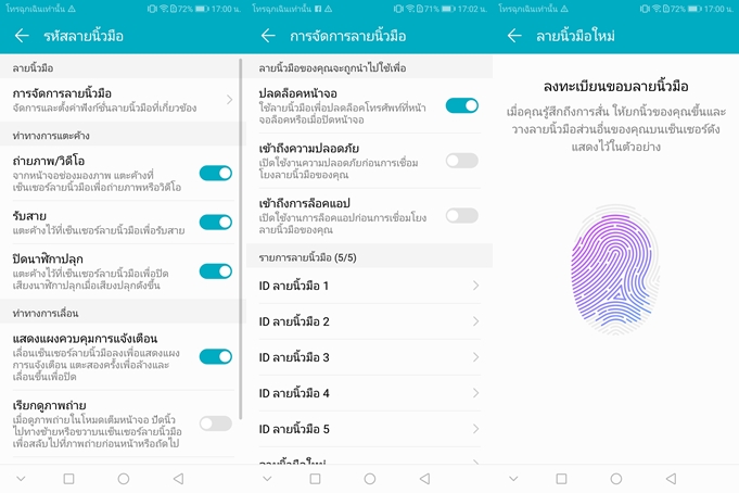 - เซ็นเซอร์ Fingerprint (rear-mounted), accelerometer, proximity, compass