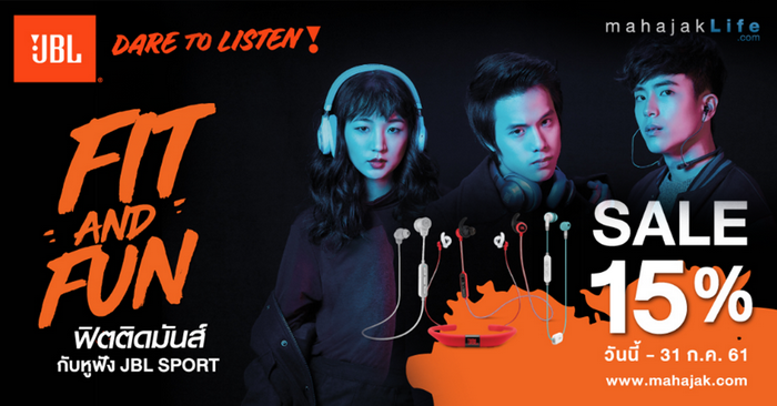 ฤดูฝนนี้มหาจักรฯจัดแคมเปญฟิตสุดร้อนแรง กับหูฟังสำหรับออกกำลังกายจาก JBL ลดราคาพิเศษ 15% ทุกรุ่น! พร้อมรับสิทธิ์เล่น FITNESS ฟรี 15 วัน ที่ WE FITNESS สาขาที่ร่วมรายการ วันนี้ - 31 ก.ค. 61 เท่านั้น!