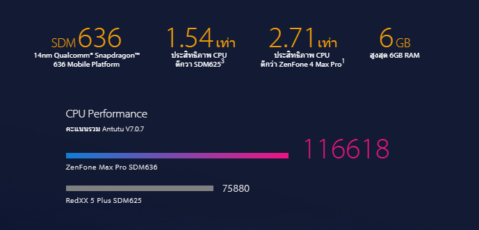 *หมายเหตุ : ASUS Zenfone Max Pro M1 รุ่น RAM 3 GB / ROM 32 GB กล้องถ่ายรูปจะมาพร้อมความละเอียด 13+5 ล้านพิกเซล และกล้องหน้า 8 ล้านพิกเซล