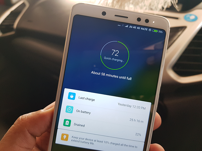 Xiaomi Redmi Note 5 ให้แบตเตอรี่ขนาด 4,000 mAh รองรับการชาร์จไว Quick Charge 2.0 ในขณะที่ ASUS Zenfone Max Pro M1 มาพร้อมแบตเตอรี่ขนาด 5,000 mAh รองรับชาร์จไว โดยทาง ASUS เคลมไว้ว่าสามารถเล่น Youtube ได้ต่อเนื่องนาน 20 ชั่วโมง เล่นเกมทั่วไปได้ต่อเนื่องถึง 12 ชั่วโมง