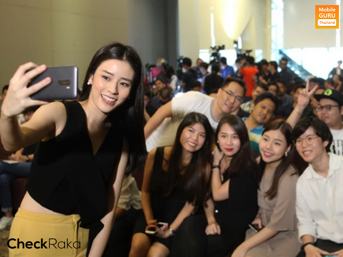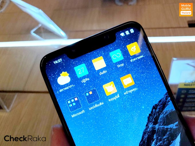 เหนือหน้าจอขึ้นไป มีแถบเซ็นเซอร์ Proximity, IR Face Unlock (Face Recognition) และกล้องหน้าความละเอียด 20 ล้านพิกเซล (AI)