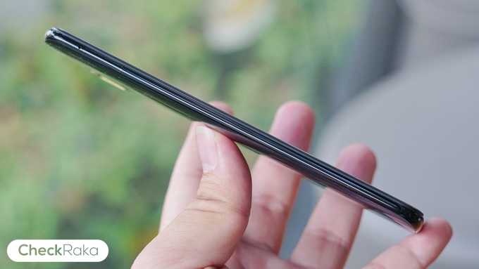 ด้านซ้ายตัวเครื่องจะเรียบๆ มีถาดใส่ซิมและ MicroSD (ใส่ได้พร้อมกันทั้ง 2 ซิมและเมม) ส่วนด้านขวามีปุ่มปรับระดับเสียง และปุ่ม Power