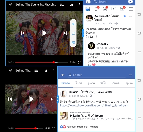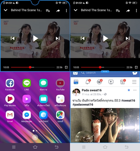 ฟีเจอร์การใช้งาน 2 หน้าจอก็สามารถทำได้ง่ายๆ เพียงใช้ 3 นิ้วลากที่หน้าจอลงมา หรือลากแถบ Quick Toggles ด้านล่างขึ้นมาแล้วเลือกฟีเจอร์ Multi Tasking ก็ได้ ความเร็วและความลื่นไหลทำได้ดีมากใช้งานได้ทั้งแนวตั้งและแนวนอน