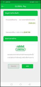 ชาวสิงคโปร์จ่ายด้วย Singtel Dash เมื่อมาเมืองไทย ส่วนชาวไทยจ่ายด้วย Rabbit LINE Pay ผ่านแอปพลิเคชัน AIS GLOBAL Pay