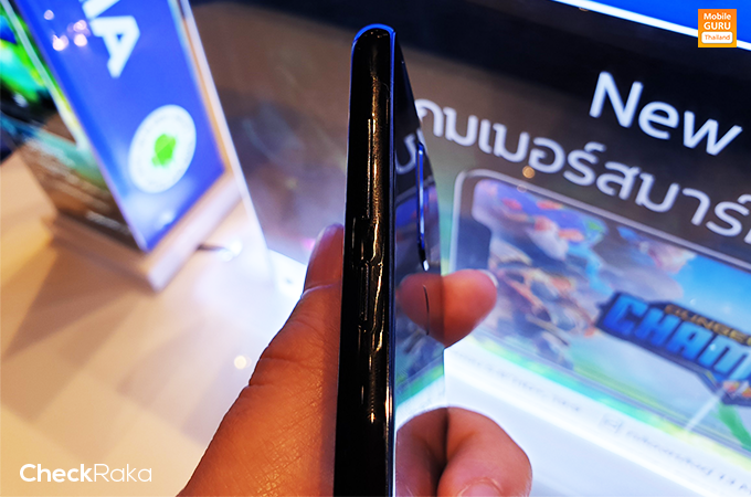 ด้านซ้ายตัวเครื่อง มีช่องถาดสำหรับใส่ซิมการ์ดเป็นแบบ Hybrid Slot เลือกใช้งานระหว่างซิมสองและ MicroSD Card (400GB)