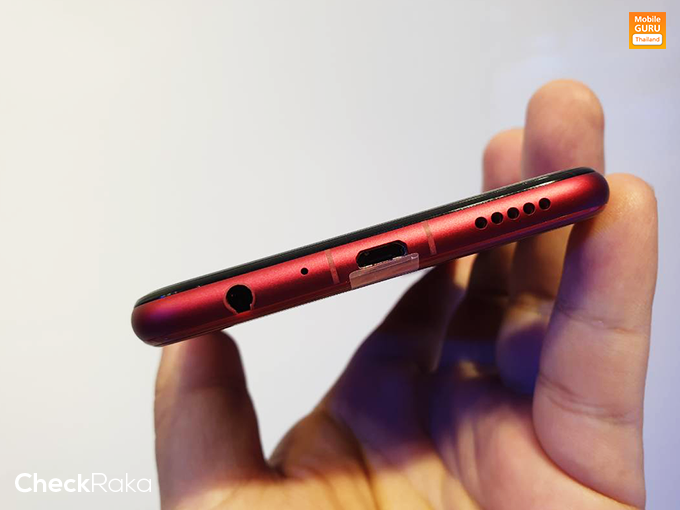 ด้านซ้ายของตัวเครื่อง มีถาดสำหรับใส่ซิมการ์ดแบบ Triple slot สามารถใช้งานซิมการ์ด 2 ซิมพร้อมกับ MicroSD Card (400GB) ได้พร้อมกัน