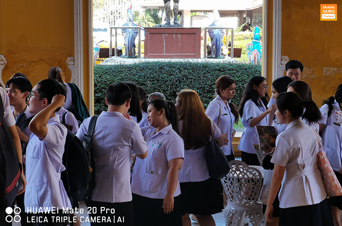พอเดินเข้าในตัวอาคารพิพิธภัณฑ์ ผมเจอน้องๆ แพทย์และพยาบาลที่มาทัศนศึกษาดูงาน เลยลองใช้โหมด Ultra Wide ของตัวกล้องเพื่อเก็บภาพน้องๆ ดู ซึ่งแน่นอนว่าเพราะเลนส์แบบ Wide เลยทำให้เก็บภาพน้องๆ ได้ครบทีมเลย เพียงแต่! โหมดนี้ต้องถือตัวมือถือนิ่งๆ ค้างไว้สัก 1 วินาทีหลังกดชัตเตอร์ถ่ายด้วย ไม่งั้นภาพจะเบลอ