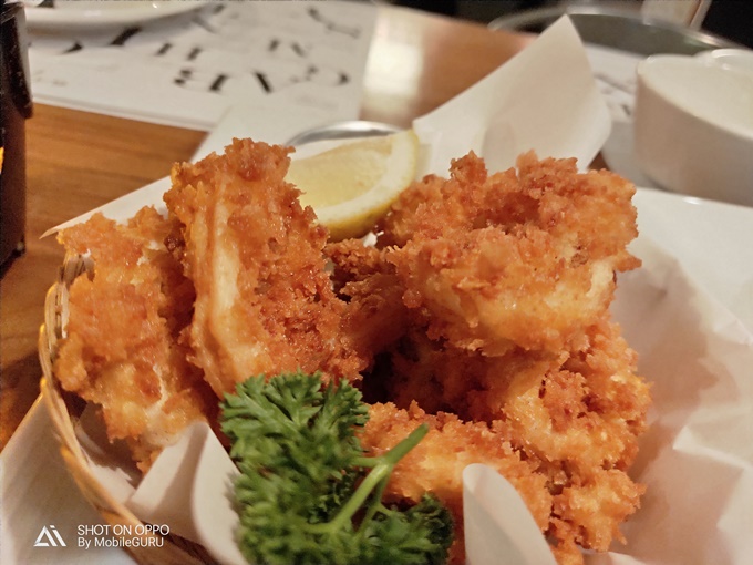 เมื่อถ่ายภาพน้องๆ น่ารักครบทุกคน ก็ล่วงเลยเวลาเกือบจะสามทุ่มแล้ว ขอตัวมาหาอะไรทานสักหน่อย เลยได้มีโอกาสเก็บภาพถ่ายอาหาร (Food) มาฝากด้วย โดยใช้กล้อง OPPO R17 Pro โหมดอัตโนมัติ เปิดกล้องปุ๊ป! ระบบ AI scene Recognition ก็ขึ้น Food ให้ทันที เราก็กดถ่ายได้เลยง่ายๆ ไม่ปรับแต่งเพิ่มเติมอะไรอีก