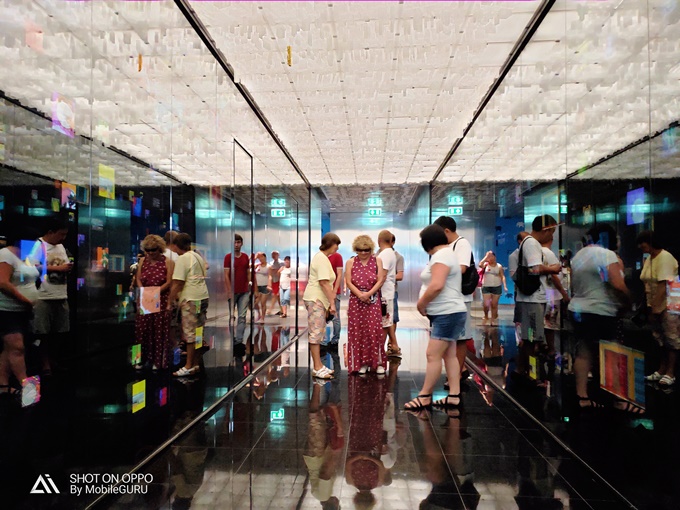 เมื่อเดินเข้าไปในตัวตึกมหานครแล้ว แสงธรรมชาติต่างๆ ก็จะเริ่มน้อยลงจนแทบจะไม่เหลือ ความสว่างที่ได้ก็จะมาแสงไฟจากหลอด LED ต่างๆ ภายในตัวตึกแทน ซึ่งกล้องสมาร์ทโฟนมักจะแพ้แสงแบบนี้ ทั้งจากโทนสีของแสงและการกระพริบของหลอดไฟ แต่กล้องบน OPPO R17 Pro กลับเอาอยู่ และถ่ายทอดภาพออกมาได้ใกล้กับที่ตามองเห็นพอสมควร ถึงแม้จะมีนอยส์เข้ามารบกวนบ้าง ซึ่งก็เป็นเรื่องปกติ