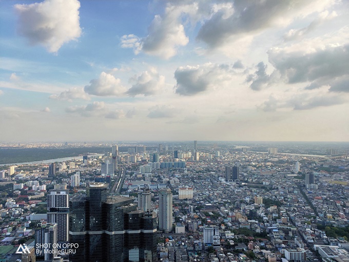 เมื่อมาถึงชั้นบนสุดของตึกมหานครกับความสูง 78 ชั้น เราก็มาเจอกับสภาพแสงธรรมชาติแบบเต็มร้อย พร้อมกับวิวหลักล้านที่ไม่คิดว่าจะได้เห็นในตัวเมืองหลวงที่ดูวุ่นวายเช่นนี้ ซึ่งก็น่าจะบททดสอบของกล้อง Triple Camera ได้เป็นอย่างดี ว่าจะเค้นประสิทธิภาพออกมาได้ดีแค่ไหน ภาพที่ได้จะเป็นอย่างไร อย่ารอช้าไปชมกันครับ