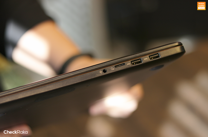 ด้านขวาของตัวเครื่อง มีพอร์ตเชื่อมต่ออยู่ 4 พอร์ต คือ USB 2 พอร์ต, SD Reader card และรูเสียบหูฟังขนาด 3.5 มิลลิเมตร