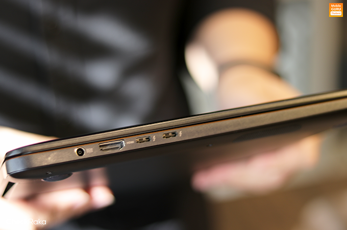 ด้านซ้ายของตัวเครื่อง มีรูเสียบสายชาร์จแบตเตอรี่ DCIN, พอร์ต HDMI และพอร์ต USB-C (3.1) 2 พอร์ต