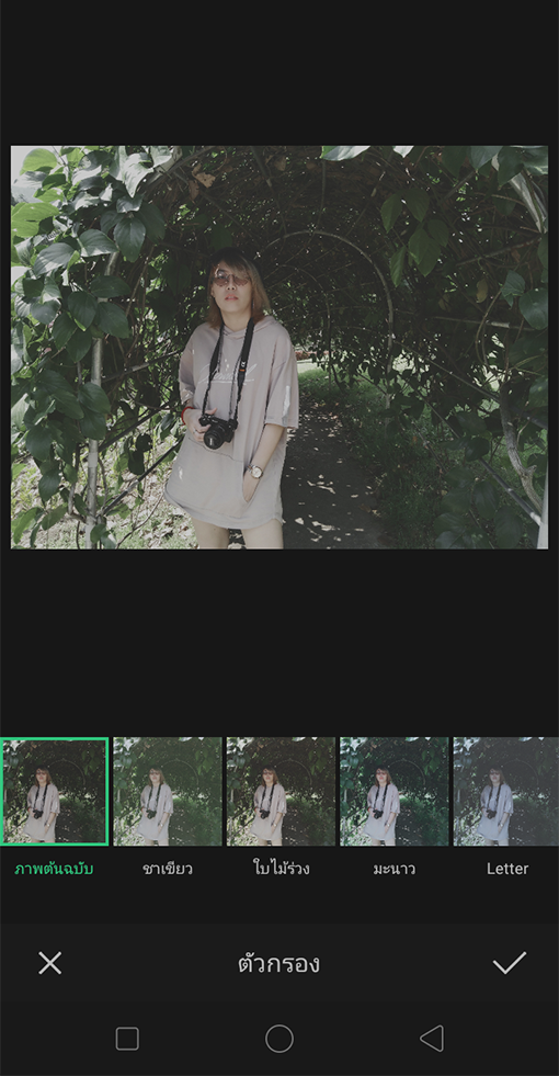 เลือกตั้งค่าตัวกรอง "ปราสาทในจินตนาการ" ซึ่งรูปที่ถ่ายในเซตที่มีนางแบบนี้จะลองใช้เป็นโทนเดียวกันทั้งหมด